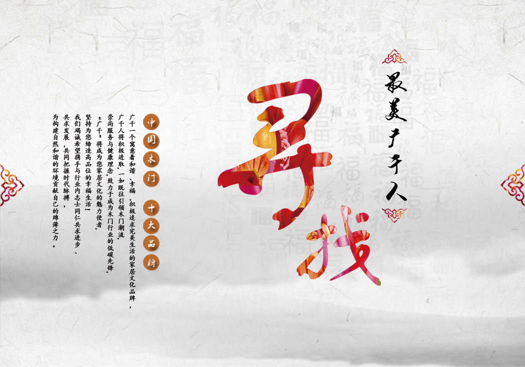 “廣千”一個寓意著和諧、幸福,積極追求完美生活的家居文化品牌,廣千人將積極進取,一如既往引領(lǐng)