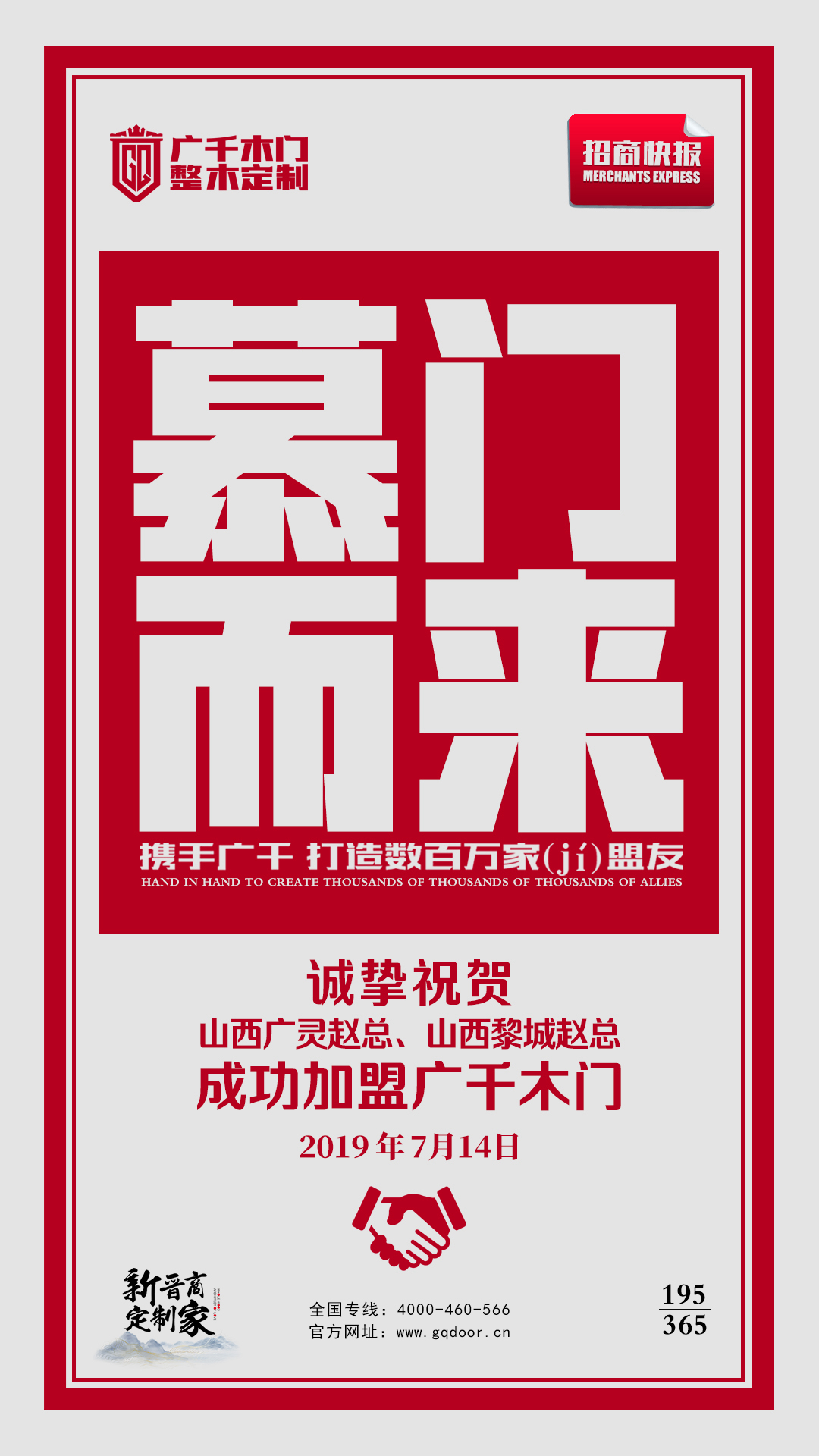 祝賀山西廣靈趙總黎城趙總加盟廣千木門(mén)