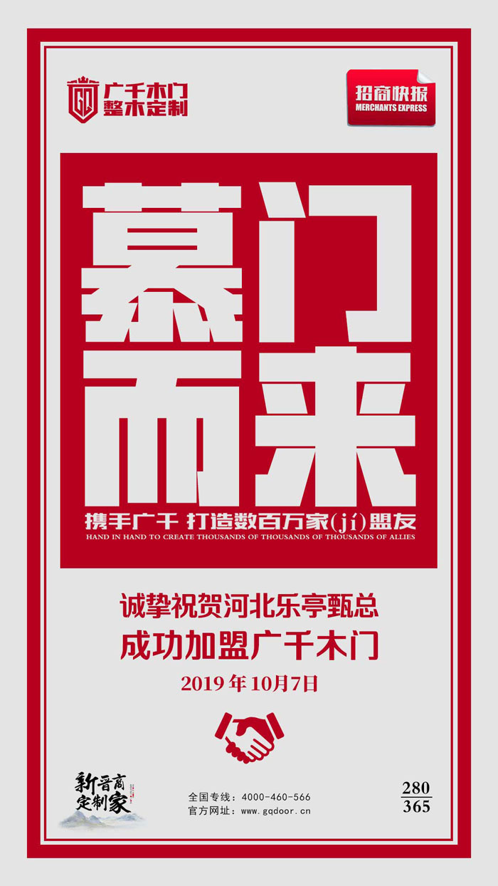 熱烈祝賀河北樂亭縣甄總成功簽約廣千木門