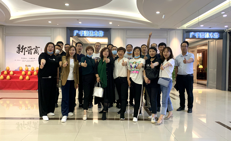 大家居時代,<機會>總是在更多的交流中產(chǎn)生。2020年5月25日,廣千木門整木定制河北區(qū)域經(jīng)銷商代表組成的考察團蒞臨山西廣千木業(yè)有限公司總部進行參觀交流,設(shè)計總監(jiān)申寶明、總經(jīng)辦梁慧、區(qū)域銷售經(jīng)理段凱峰等人予以熱情接待。
