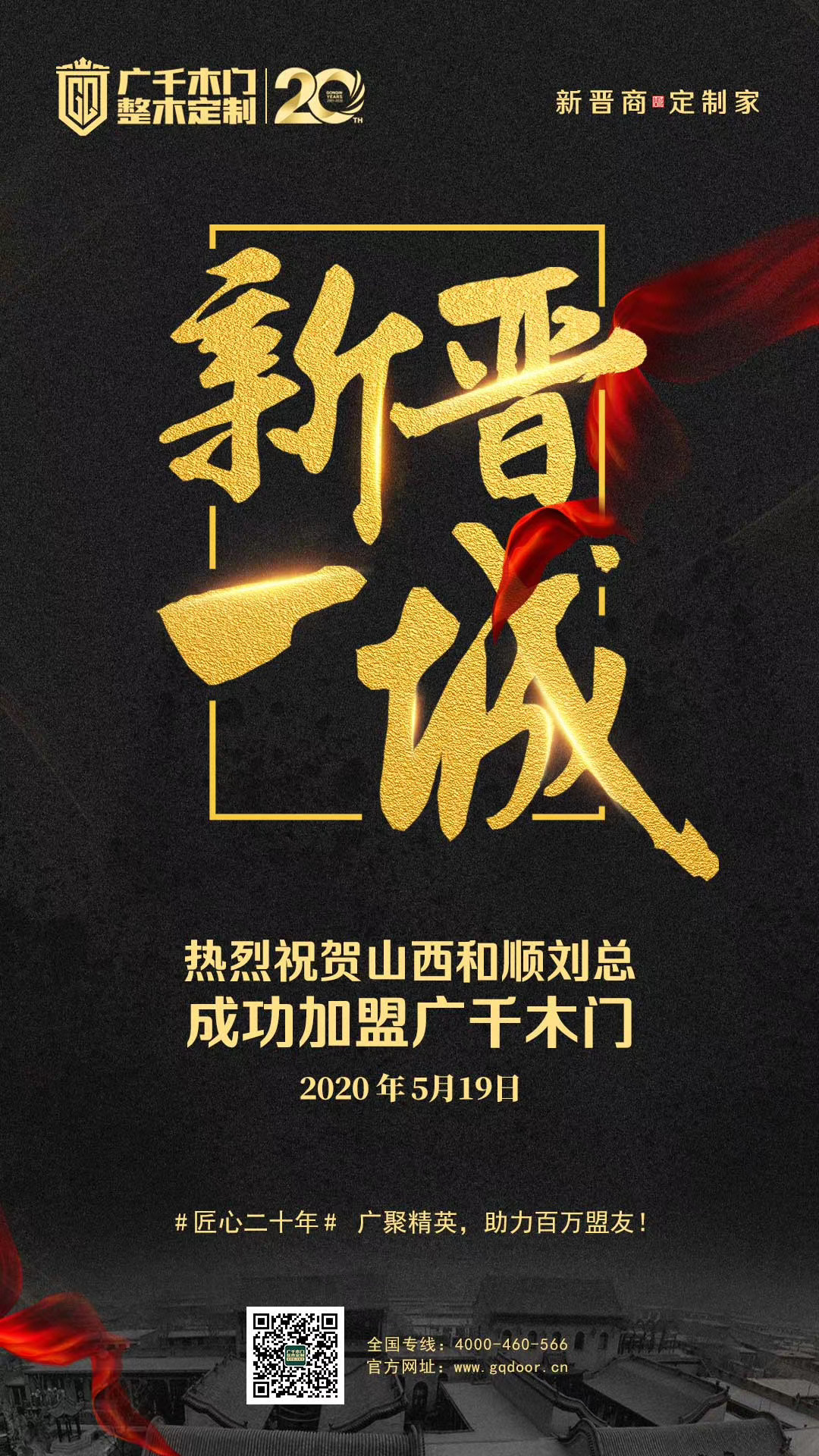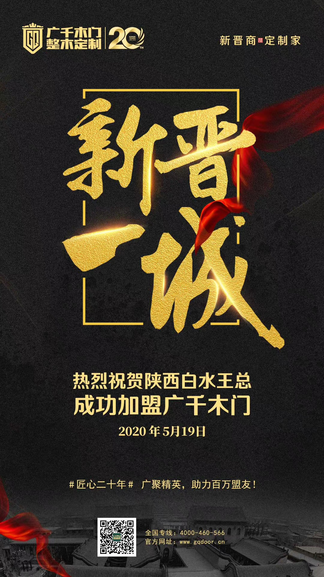 繼五月中上旬廣千招商捷報(bào)頻傳后,廣千木門(mén)整木定制招商又有大動(dòng)作!2020年5月19日,廣千木門(mén)整木定制品牌招商新晉兩城!山西省和順縣劉總、陜西省白水縣王總正式加盟整木定制十大品牌廣千木門(mén)整木定制,恭喜劉總、王總成功拿下和順縣、白水縣品牌經(jīng)營(yíng)權(quán)。
