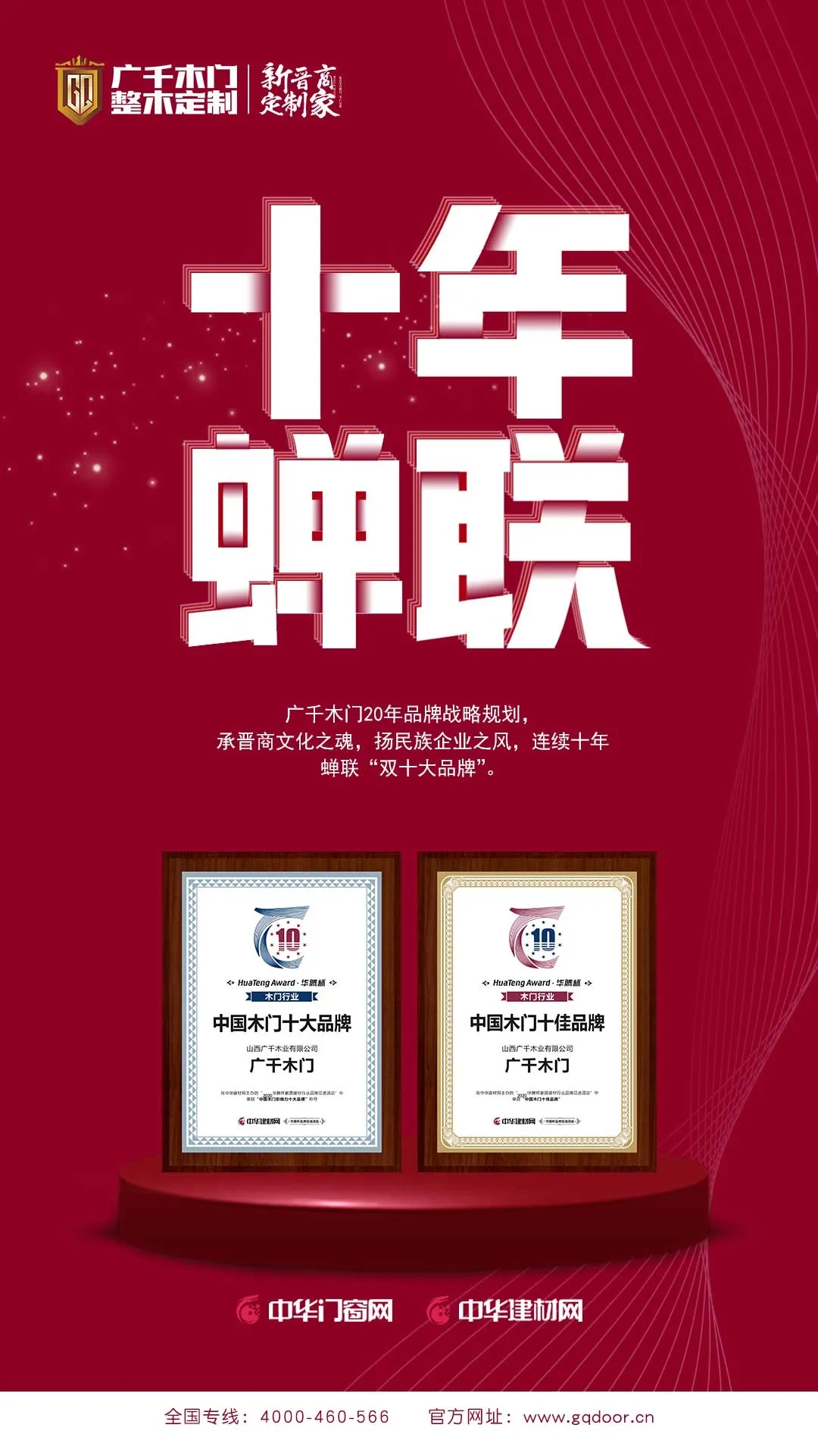 十連金榜!廣千木門再獲木門雙十大品牌獎