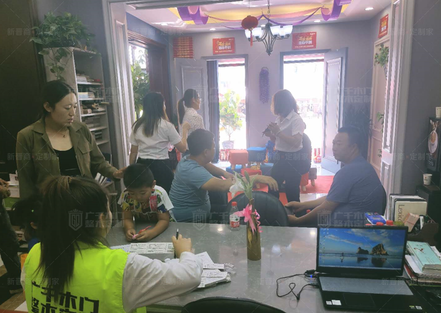 在舞獅、歌舞等開業(yè)獻(xiàn)禮表演結(jié)束后,顧客趁開業(yè)優(yōu)惠紛紛下定、開單、刷卡、砸金蛋一氣呵成。一個(gè)好的品牌離不開背后強(qiáng)大的團(tuán)隊(duì)支撐。廣千烏審旗的每一位家人以精湛的銷售技巧、專業(yè)的設(shè)計(jì)、優(yōu)質(zhì)的服務(wù)打動(dòng)顧客,現(xiàn)場(chǎng)一對(duì)一火爆簽單,截止目前已累計(jì)簽單23單,捷報(bào)不斷,活動(dòng)還在火熱進(jìn)行中!