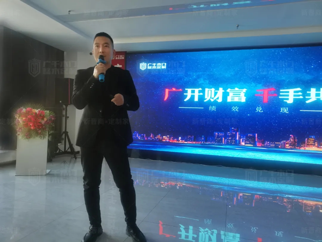 會議正式開始,廣千木門營銷中心總經(jīng)理首先登臺致辭,他精神飽滿,感慨萬千!張總復盤了2020年后兩個月廣千的招商情況,并充分肯定了大家取得的驕人成績。面對2021年的宏偉開篇,他鼓勵大家昂揚斗志,再接再厲,做出更輝煌的成績,齊心協(xié)力實現(xiàn)企業(yè)的長效發(fā)展,圓滿完成2021年的招商大計。