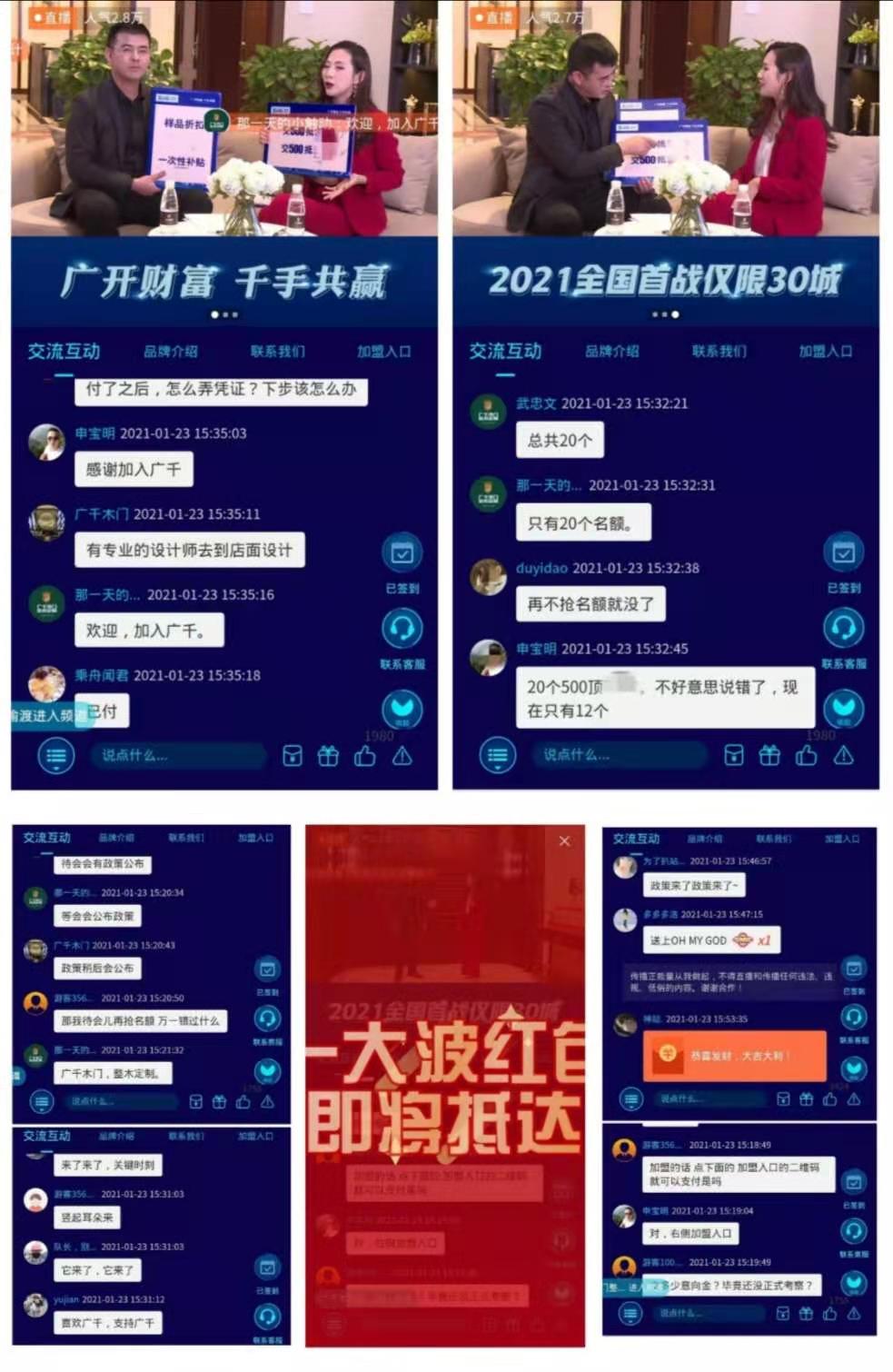 直播中,還邀請了多位優(yōu)秀經(jīng)銷商代表向直播間的朋友分享加盟廣千的創(chuàng)富歷程,幾位大商在分享中都提到加盟之初,廣千完善的產(chǎn)品體系、優(yōu)惠的產(chǎn)品政策及多方位的幫扶體系是吸引他們加入的重要原因。