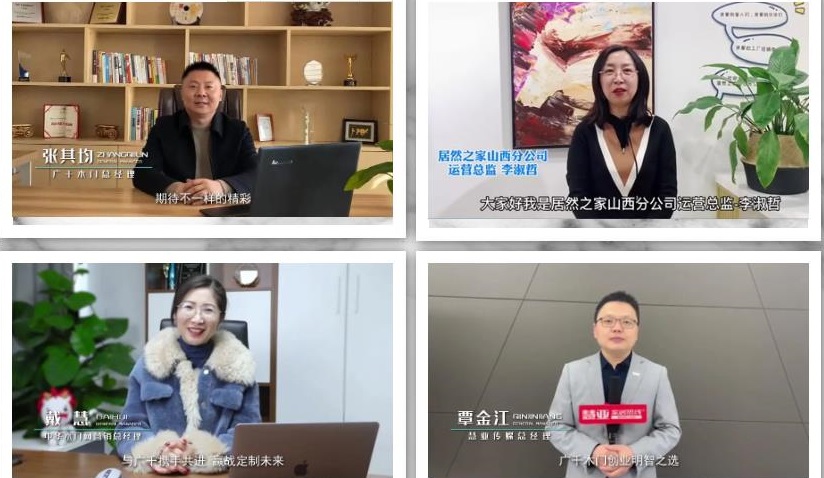 大咖助陣,誠意十足!為支持廣千木門線上財(cái)富峰會(huì),居然之家、中華門窗網(wǎng)、慧亞傳媒的高管紛紛送上祝福。廣千木業(yè)總經(jīng)理張其均壓軸出場(chǎng),除了送祝福,還讓大家期待接下來精彩的直播環(huán)節(jié)!