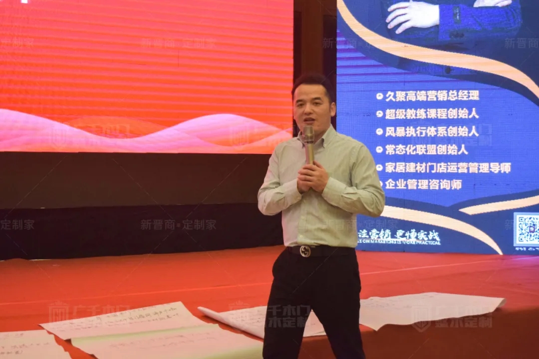 隨著中國定制家居市場的不斷變革,精細(xì)化的落地執(zhí)行和思維營銷成為打開未來定制市場的一把金鑰匙。本次精英培訓(xùn)會(huì)議,廣千木門邀請久聚高端營銷大咖團(tuán)隊(duì)進(jìn)行強(qiáng)勢授課,助力終端門店打造一支高效率、高素質(zhì)、高執(zhí)行力的精英團(tuán)隊(duì)。
