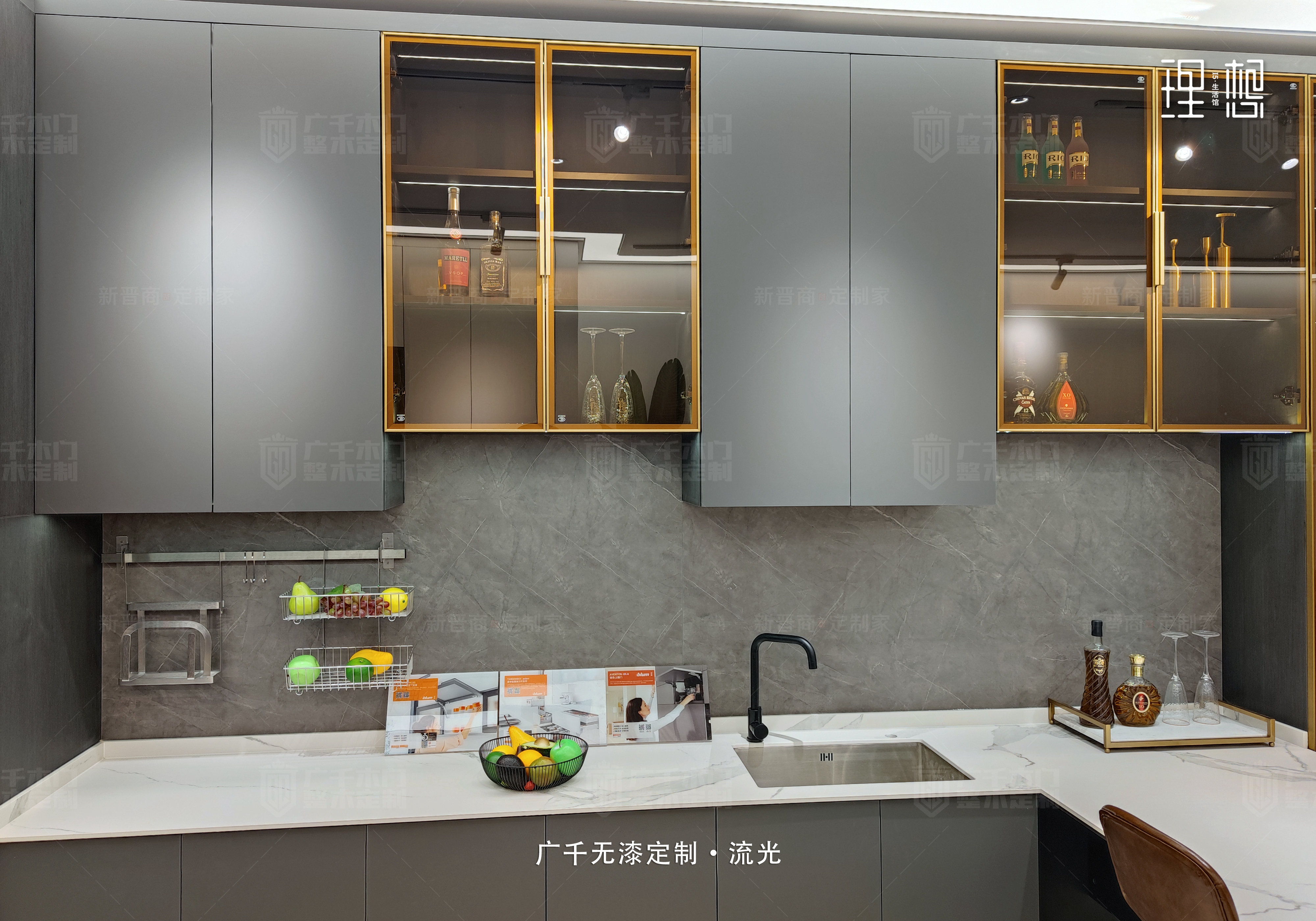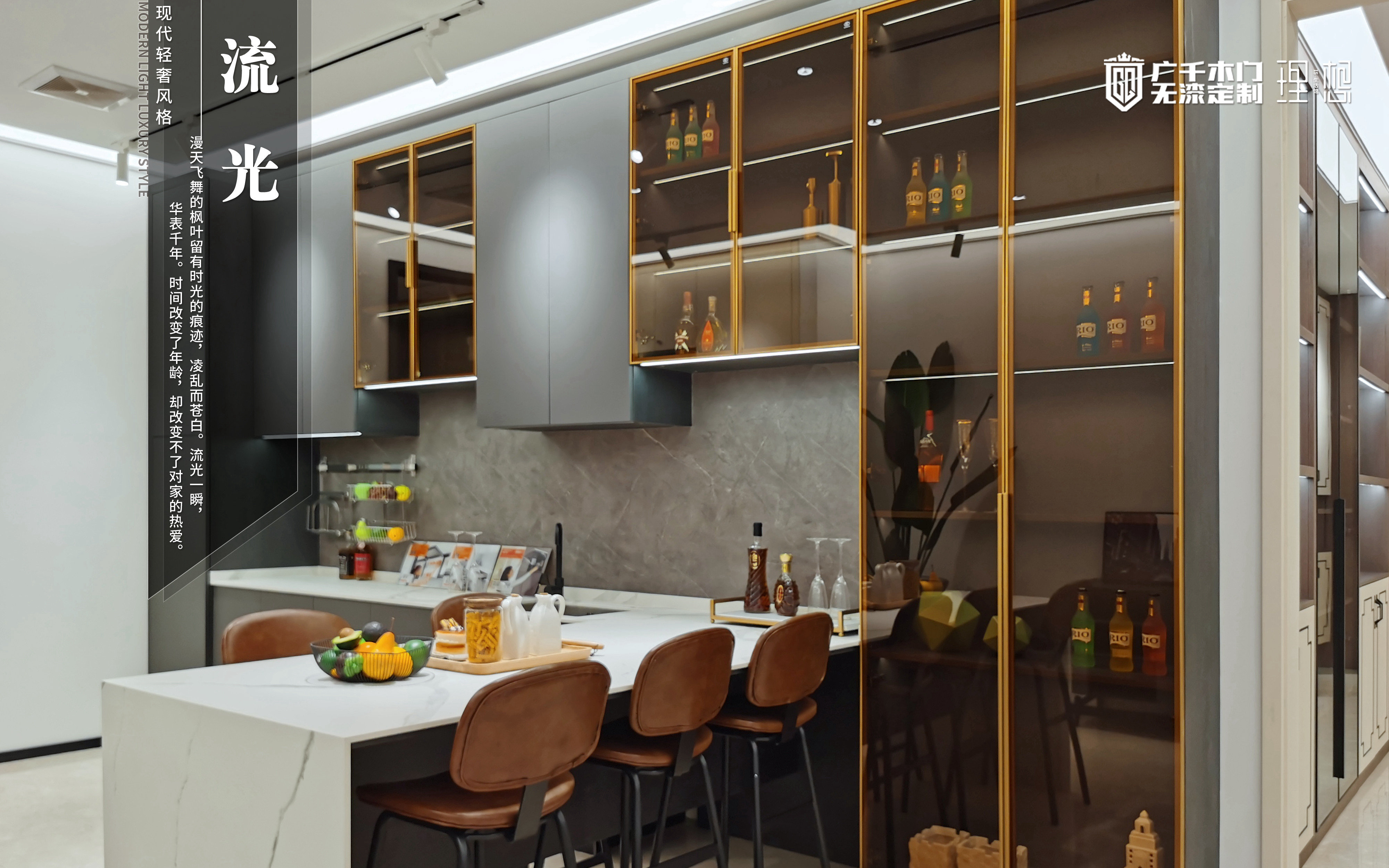 廚房之中,石灰華巖板大氣有質(zhì)感,整墻而立的酒柜,收納“一柜”搞定,極簡金框玻璃柜門,設計感十足。溫馨和樂的氣韻溫養(yǎng)了一家人的生活情趣,也見證了夢想生活的煙火氣。