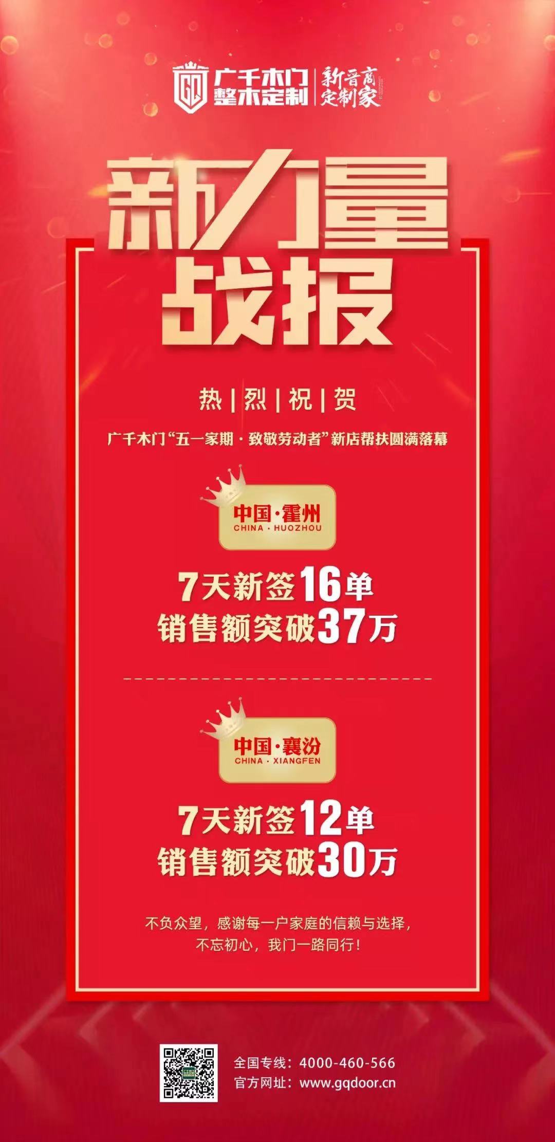 這次活動(dòng),廣千木門全國53城門店齊心協(xié)力,捷報(bào)頻傳。在短時(shí)間內(nèi)創(chuàng)造了1980萬的銷售奇跡,較同期增長26%,業(yè)績實(shí)現(xiàn)全線爆破!在疫情遲遲未退卻之時(shí),依然能取得這樣不俗的成績,每一位廣千人都應(yīng)該引以為傲!本次“五一‘家’期·致敬勞動(dòng)者”活動(dòng)的圓滿收官,離不開全體廣千人的辛勤付出與努力,更離不開廣大消費(fèi)者對廣千木門的信任與支持!因?yàn)橛心銈?,廣千木門才能捷報(bào)連連,頻創(chuàng)佳績!