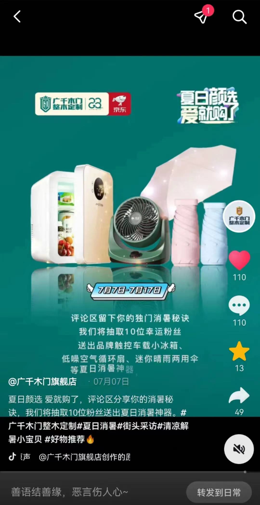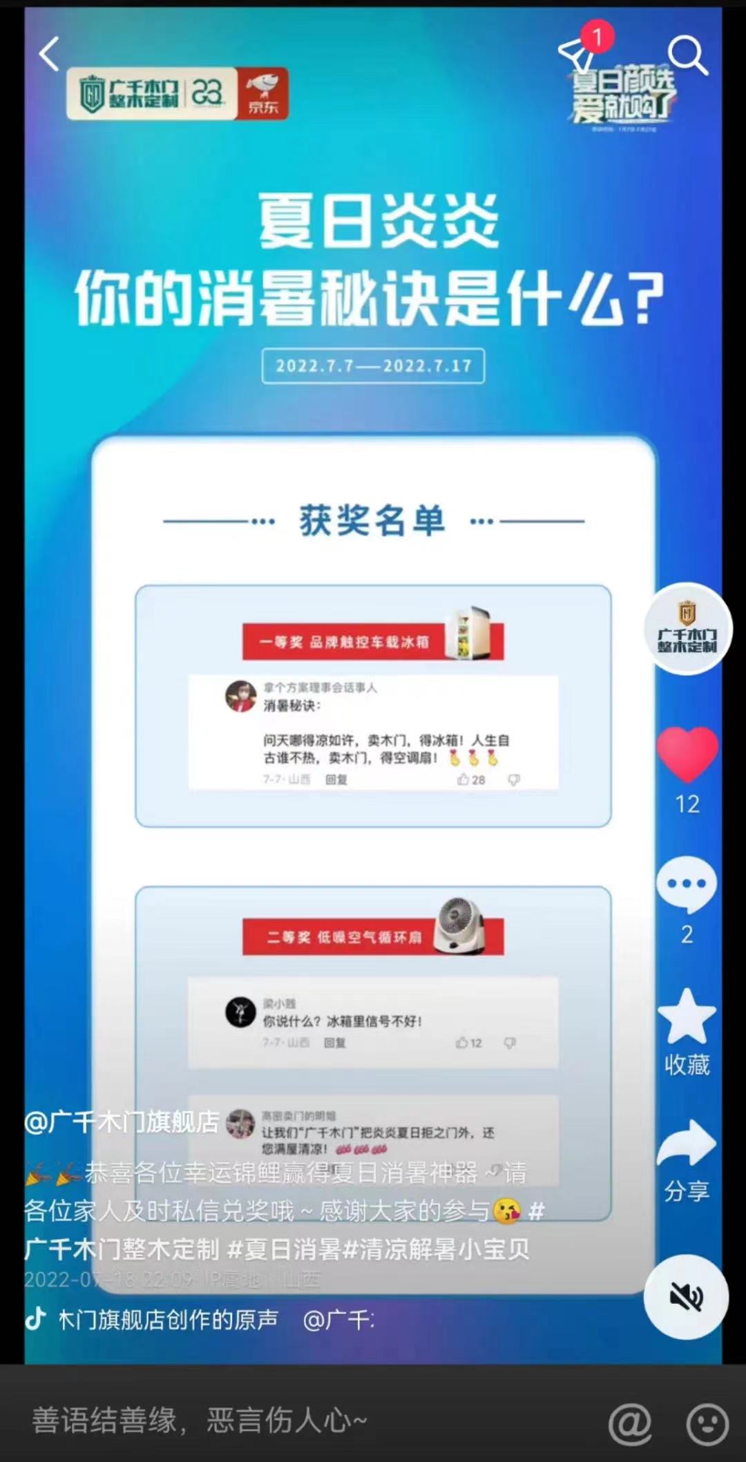夏日顏選,愛就購了!此次活動(dòng)攜手抖音,用大家喜聞樂見的方式,讓福利贏取更加簡單便捷。不僅提高了老顧客的關(guān)注度,也收獲了更多新的“千粉”,各終端門店的人氣也只升不降。憑借著過硬的口碑和優(yōu)良的品質(zhì),不少客戶通過抖音線上活動(dòng)選擇了廣千,帶來更多的好評和點(diǎn)贊!