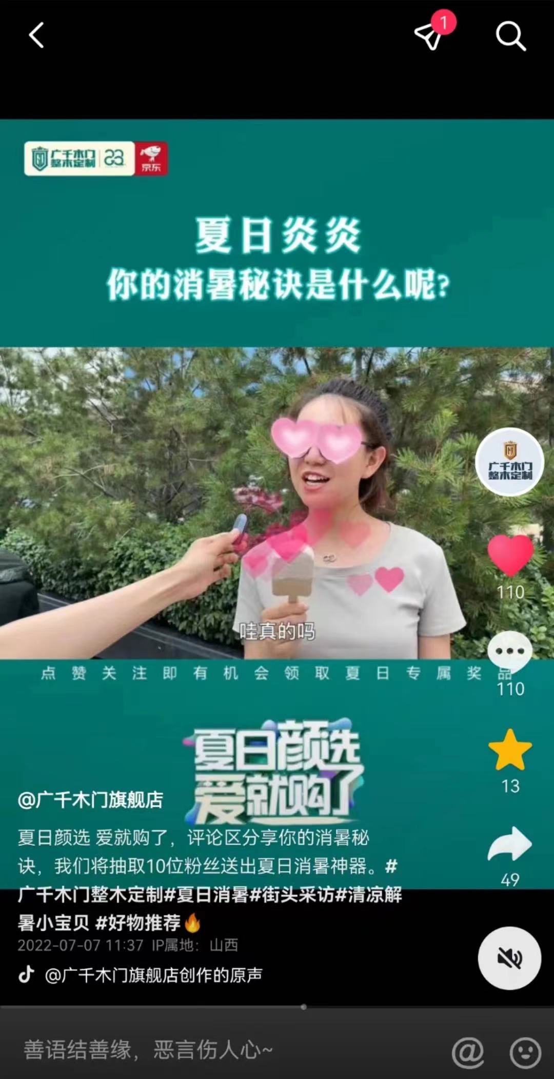 此次活動攜手抖音,用大家喜聞樂見的方式,讓福利贏取更加簡單便捷。不僅提高了老顧客的關注度,也收獲了更多新的“千粉”,各終端門店的人氣也只升不降。憑借著過硬的口碑和優(yōu)良的品質,不少客戶通過抖音線上活動選擇了廣千,帶來更多的好評和點贊!