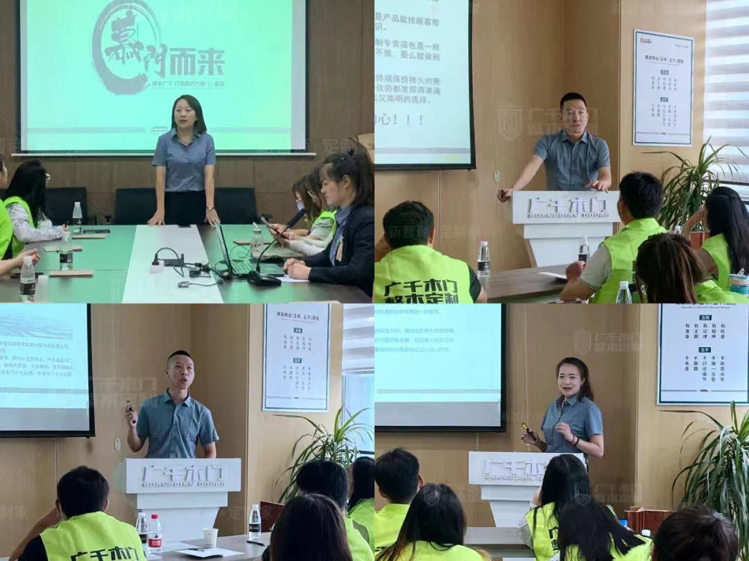 為回饋新老顧客支持,幫助終端門店快速站穩(wěn)市場,2022年7月10日,廣千木門高平旗艦店、邢臺旗艦店、青州旗艦店 、方山旗艦店、靜樂旗艦店、臨西旗艦店同期開展為期14天的“夏日顏選”六城聯動活動。通過此次賦能培訓,新的營銷模式、營銷思路也被靈活運用到了各門店日常的銷售實踐中。此次聯動六城同啟,4天喜簽44單,每城都鑄就了各自的銷售奇跡!