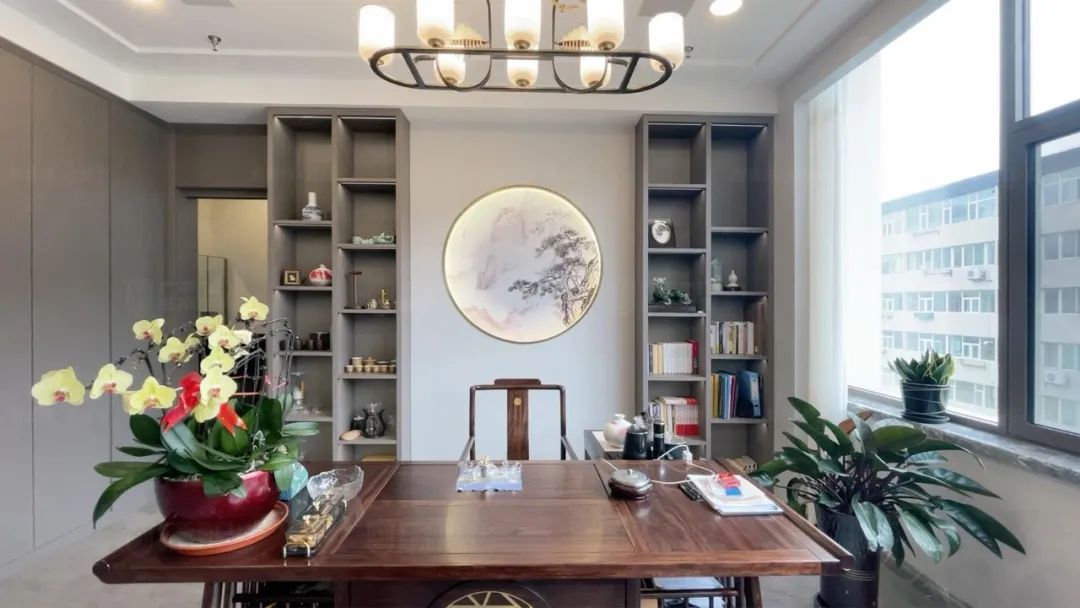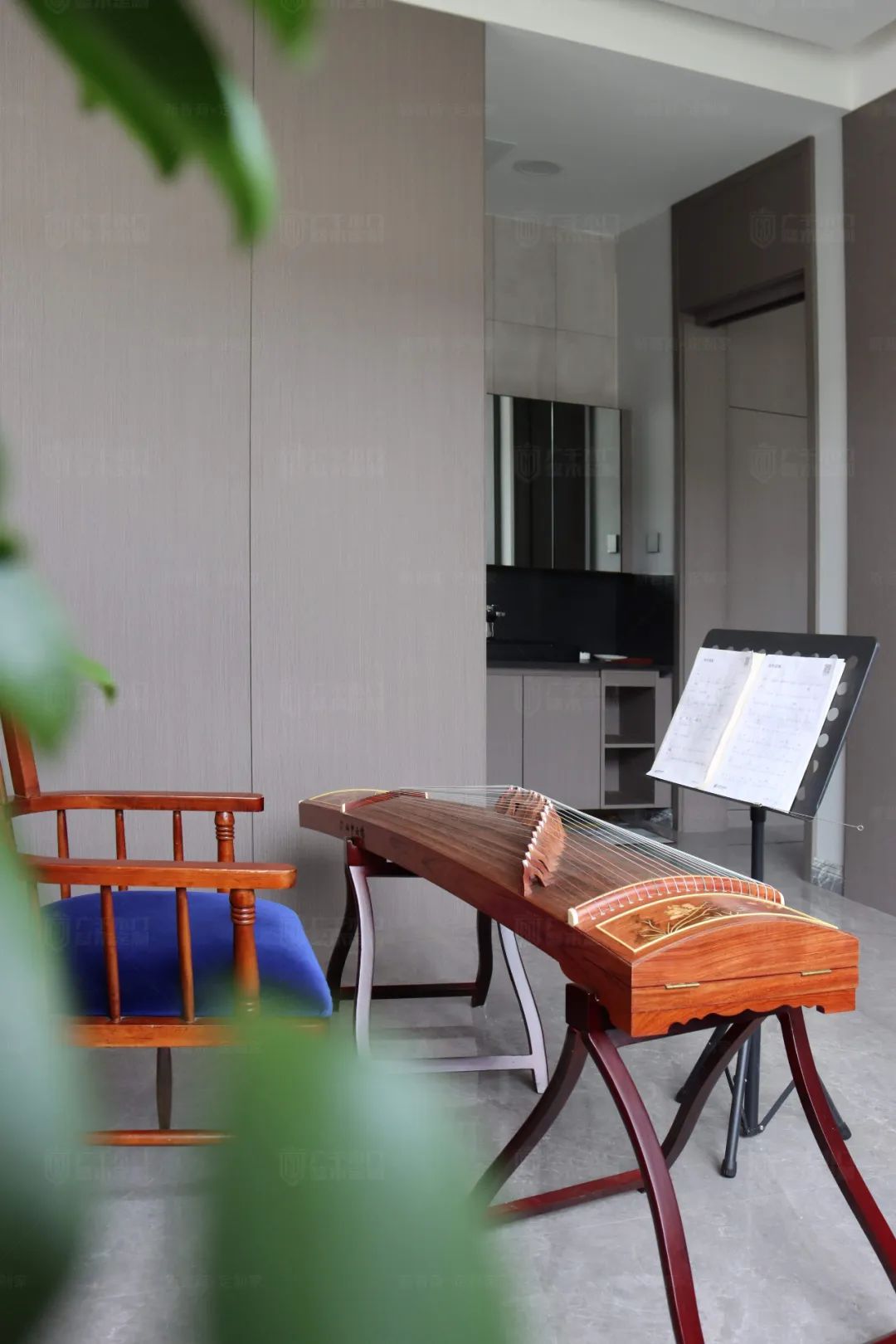 身處繁華,心歸沉靜。閑時(shí)彈撥一曲古箏,以茶會(huì)友,于遠(yuǎn)山淡影的意境中體悟人間至味是清歡的東方韻味。整個(gè)設(shè)計(jì)將日常生活與東方審美糅為一體,在靜謐優(yōu)雅的風(fēng)格中詮釋現(xiàn)代中式的詩(shī)性與意韻,體現(xiàn)出廣千思摩設(shè)計(jì)對(duì)東方意境的營(yíng)造和向往。