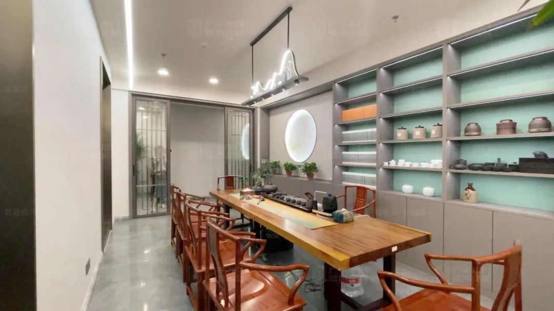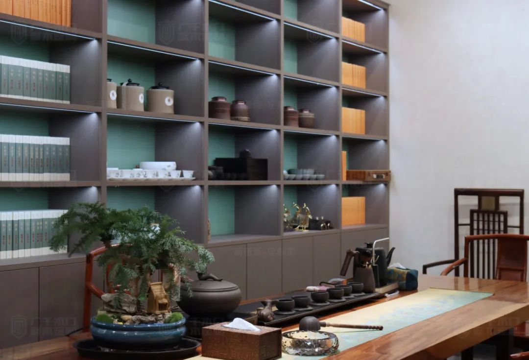 燃一線香,沏一壺茶,邀三兩好友對(duì)飲,從繁雜日常中釋放靈魂。淡雅的色彩,洗練的線條,極富禪意的山水背景,加之一方清新雅致的茶席,讓客人在茶香裊裊的氣霧升騰中得到滿足。光效渲染彰顯茶室格調(diào)之高雅,設(shè)計(jì)陳飾豐富了空間層次。不倚外物,不假形式,滿屋清香,令人沉醉。
