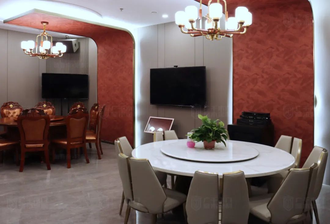 身處其中,行也安然,坐也安然。整個(gè)設(shè)計(jì)風(fēng)格讓匯聚于此的天下賓朋一邊感受如詩(shī)如畫般的雅致意境,一邊體驗(yàn)輕松愉悅的放松時(shí)光。休閑室內(nèi)精致的桌椅、柔和的燈光搭配高級(jí)的灰色和極富意蘊(yùn)的掛畫,避免了單一沉悶,讓客人頓覺(jué)舒適愜意的同時(shí),提升了空間質(zhì)感。