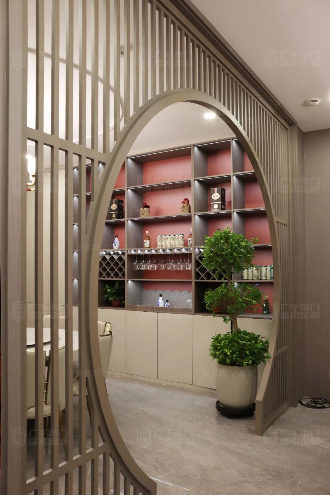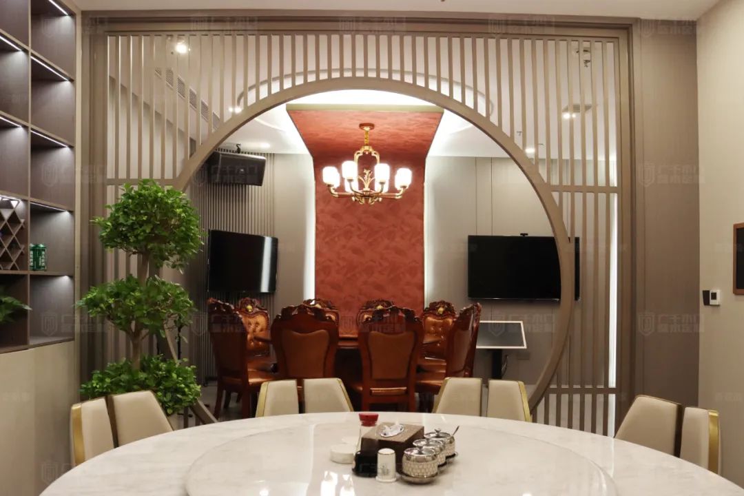 整體設(shè)計(jì)不見庸俗之色,于意境當(dāng)中,既傳遞著人文情韻之優(yōu)雅,又訴說(shuō)著空間流動(dòng)之美感。中式格柵為整個(gè)空間帶來(lái)了古色古香的東方意蘊(yùn),以現(xiàn)代人的審美需求打造出極富韻味的藝術(shù)空間,同時(shí)表達(dá)了廣千思摩設(shè)計(jì)對(duì)審美境界的高層次追求。