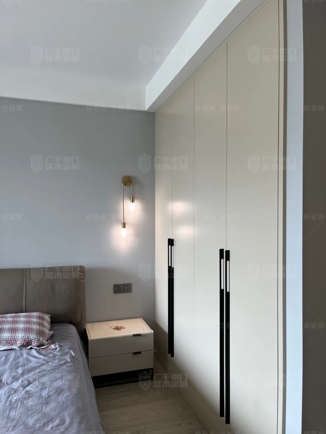 簡(jiǎn)至極致,方能呈現(xiàn)空間質(zhì)感。整個(gè)設(shè)計(jì)杜絕了浮夸綺靡,將不必要的元素刪減,打造出舒適溫馨的休憩空間。柔和的燈光搭配高級(jí)灰的墻體和米白色的柜體,呈現(xiàn)出低調(diào)內(nèi)斂的奢華之感。簡(jiǎn)潔外表下,蘊(yùn)含著整木定制十大品牌廣千思摩設(shè)計(jì)對(duì)時(shí)尚的獨(dú)到見(jiàn)解。