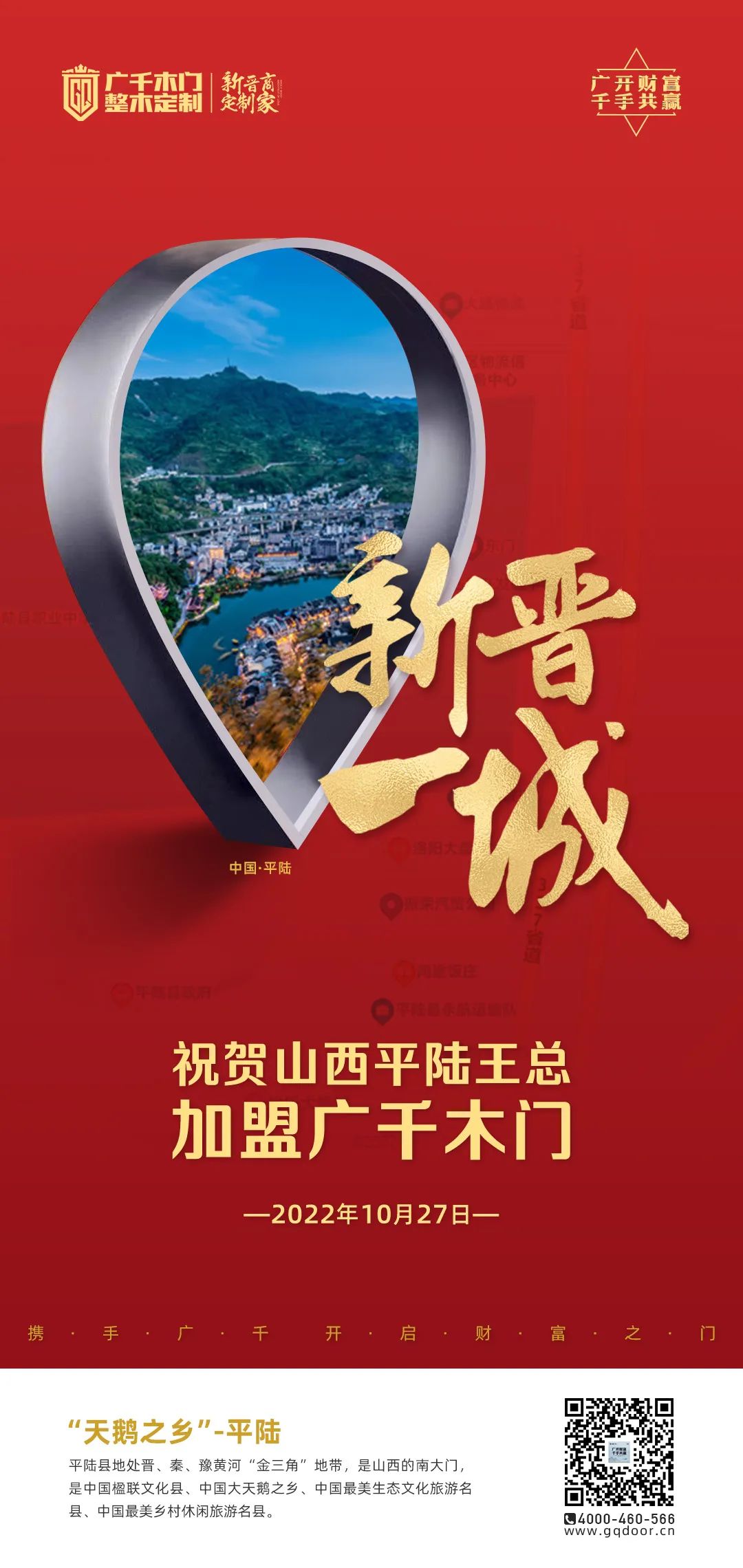 10月,廣千人持續(xù)開(kāi)疆拓土,再創(chuàng)卓然戰(zhàn)績(jī),為廣千的輝煌版圖再添5城!大力擴(kuò)充終端陣營(yíng),是廣千2022“千城千店”戰(zhàn)略部署的進(jìn)一步實(shí)施,有助于廣千木業(yè)“大華北”戰(zhàn)略目標(biāo)的深度落實(shí)!期待在11月,能有更多有識(shí)之士加入中國(guó)木門十大品牌廣千木門,攜手繪制更為廣大的整木定制市場(chǎng)藍(lán)圖!