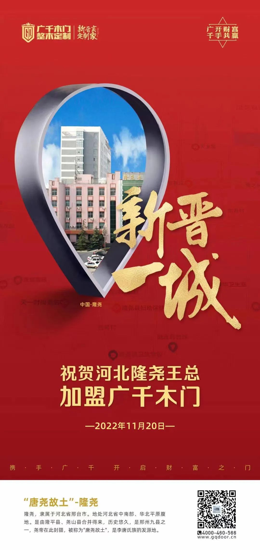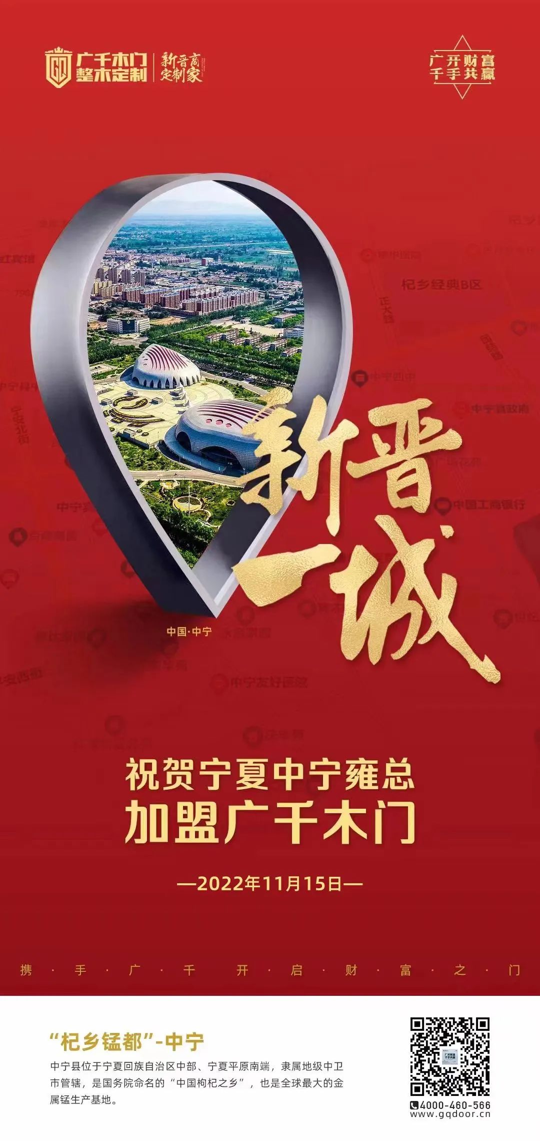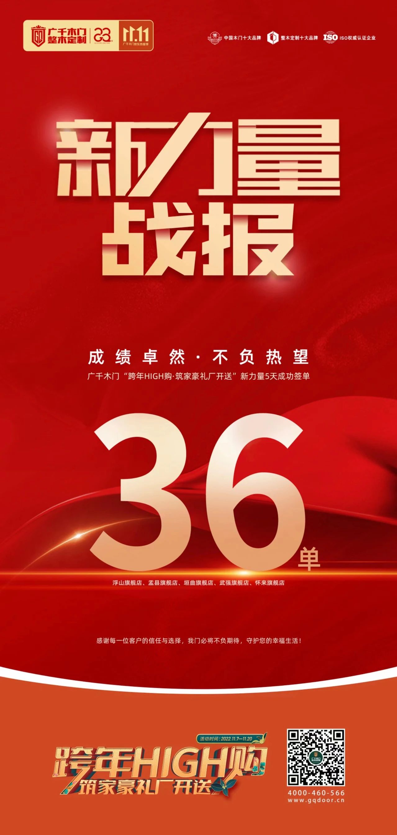11月,雖有不少地區(qū)受大環(huán)境的影響,無法正常運行,但廣千人依然創(chuàng)造出卓然戰(zhàn)績,為廣千再添5城!大力擴充終端陣營,是廣千2022“千城千店”戰(zhàn)略部署的進一步實施,有助于中國木門十大品牌廣千木門“大華北”戰(zhàn)略目標的踐行落地!期待在12月,能有更多有識之士加入廣千木門,攜手共創(chuàng)更為廣大的整木定制藍圖!