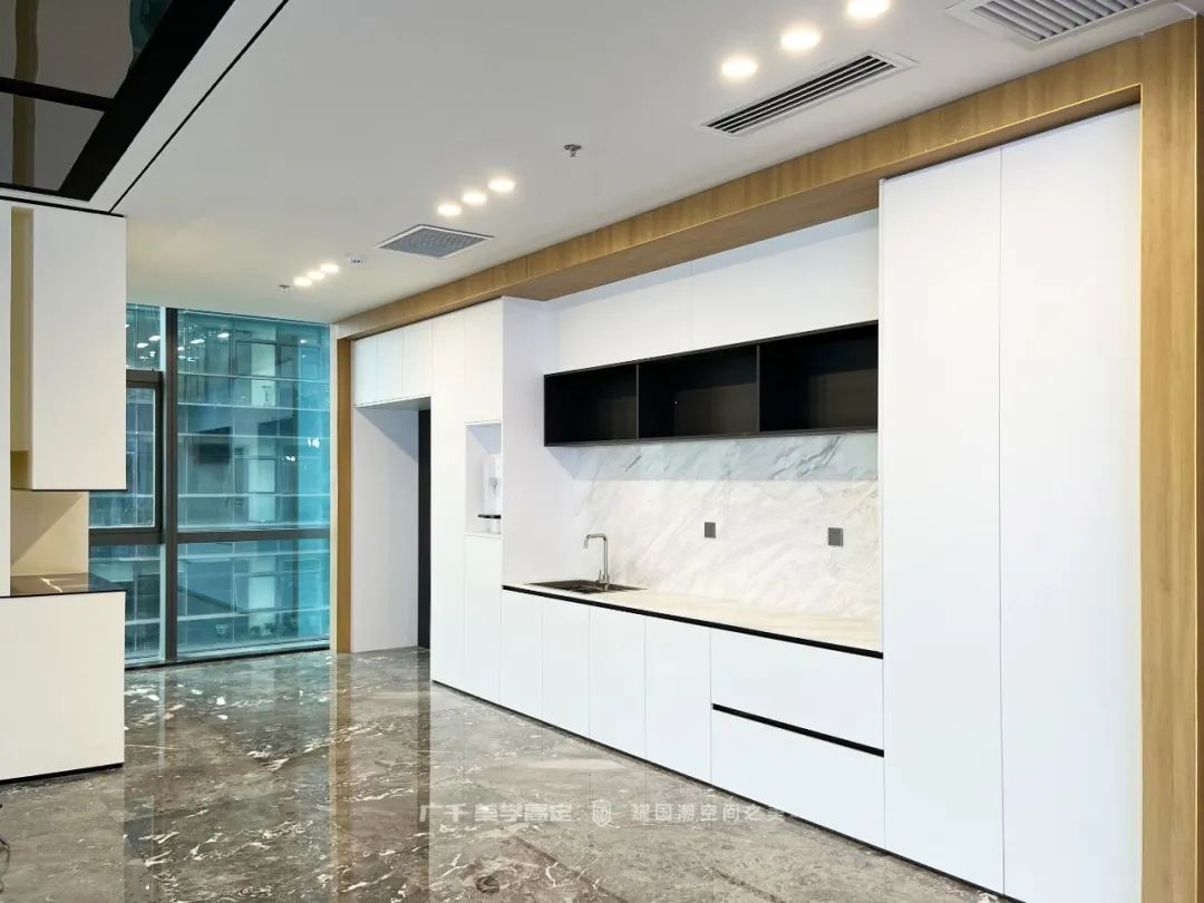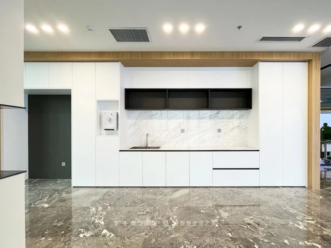 茶水區(qū)的布局延續(xù)了整木定制十大品牌廣千思摩設(shè)計(jì)“簡(jiǎn)潔高效”的設(shè)計(jì)理念,在滿足功能的同時(shí),讓空間利用更加合理。黑與白的經(jīng)典搭配,打破了單一色塊帶來(lái)的沉悶。停下繁忙的腳步,小憩片刻,品一杯醇香的咖啡為疲憊的身體充電,也不失為一種小確幸~