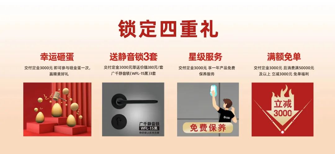 多元選擇,總有一款適合您!廣千木門(mén)整木定制,用心守護(hù)您的美好生活!活動(dòng)期間,進(jìn)店購(gòu)買(mǎi)以下任一產(chǎn)品,就能參與跨年單所有優(yōu)惠福利!一年只此一次,快來(lái)選購(gòu)吧!
