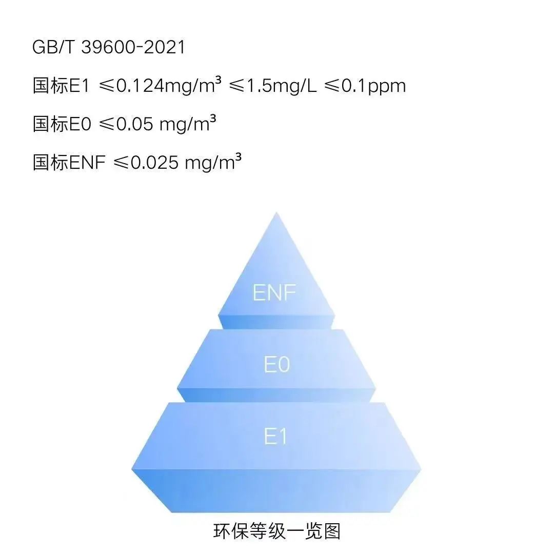 2021年10月,新的國(guó)標(biāo)GB/T39600-2021《人造板及其制品甲醛釋放量分級(jí)》對(duì)甲醛釋放限量值進(jìn)行了分級(jí):分別是E1≤0.124mg/m³、E0≤0.05mg/m³、ENF≤0.025mg/m³三個(gè)環(huán)保標(biāo)準(zhǔn),而我國(guó)現(xiàn)行的人造板甲醛釋放量的標(biāo)準(zhǔn)是E1≤0.124mg/m³。其中E1對(duì)標(biāo)歐標(biāo)E1、E0約對(duì)標(biāo)歐標(biāo)的E-LE標(biāo)準(zhǔn)、ENF對(duì)標(biāo)日本F4星級(jí)標(biāo)準(zhǔn),要求更為苛刻,國(guó)內(nèi)能達(dá)到ENF級(jí)別的廠商也更是屈指可數(shù)。