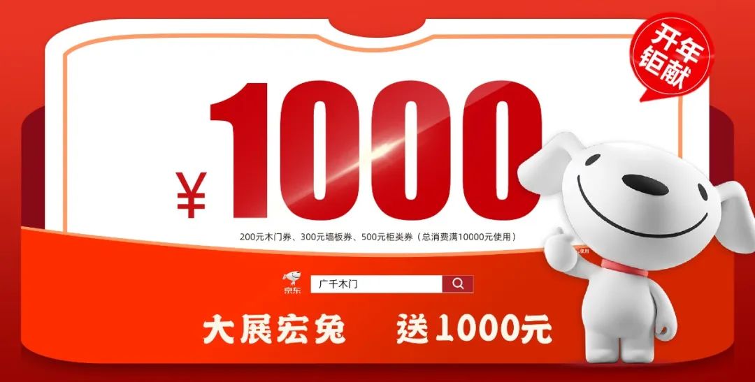 “狂飆”直送,萬券齊發(fā)!活動(dòng)期間,凡進(jìn)入廣千木門京東官方旗艦店咨詢客服,即可領(lǐng)取總部限量派發(fā)的1000元迎新筑家券,可線下直抵貨款!(注:總消費(fèi)滿10000元使用)
