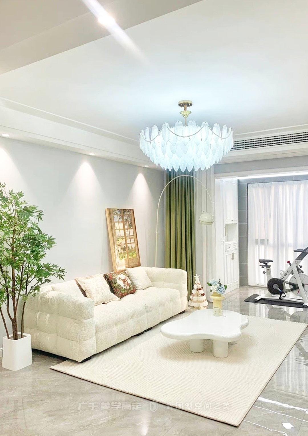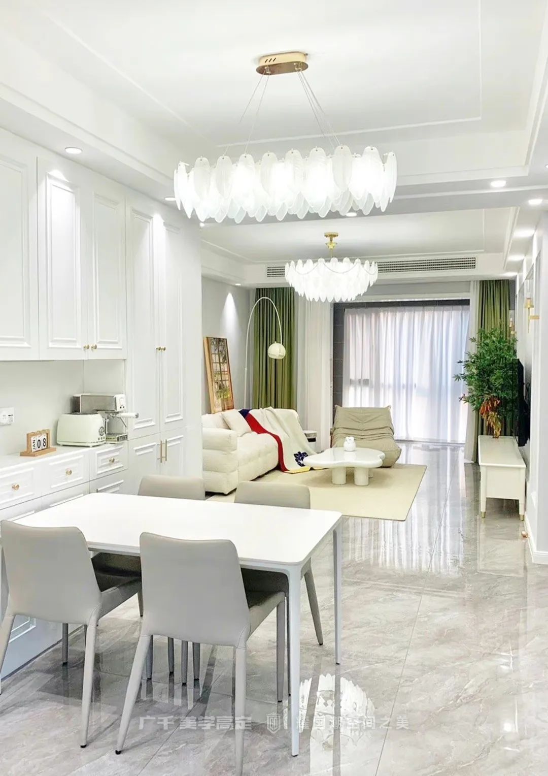 整個(gè)設(shè)計(jì)選擇用翠綠等春天的標(biāo)志性色彩的裝飾來(lái)呼應(yīng)整體設(shè)計(jì),春天的生機(jī)感呼之欲出。在悠閑午后,閑臥在沙發(fā)上,窗外春風(fēng)蕩漾,室內(nèi)光影不斷交替變換,輕松找回生活的松弛感。