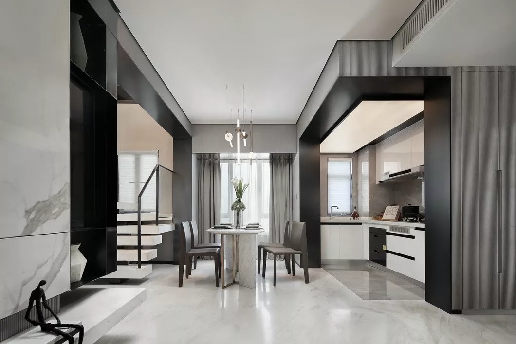 “極簡”并非簡單的斷舍離,而是心無旁騖地關(guān)注材料,將其特性無限純化,整體保持了現(xiàn)代極簡風(fēng)格,同時(shí)最大程度釋放空間體量,將空間利用最大化,融入功能,簡而不減。